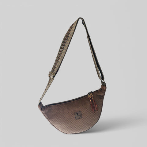 This crescent-shaped crossbody bag offers plenty of space for all your daily essentials.