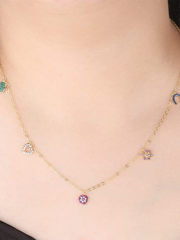 Copper Multi Charm Necklace - 18kt Gold Plated